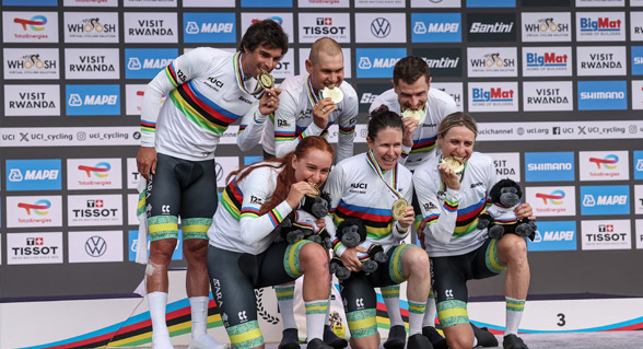 كيجالي (رويترز) - احتفظت أستراليا بلقبها في سباق التتابع للفرق المختلطة ضمن بطولة العالم لسباقات الدراجات على الطرق، بعدما حققت الفوز في جولتين من سباق جبلي بطول 20.9 كيلومتر في كيجالي يوم الأربعاء.