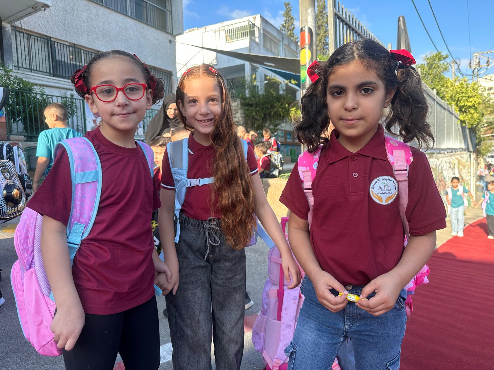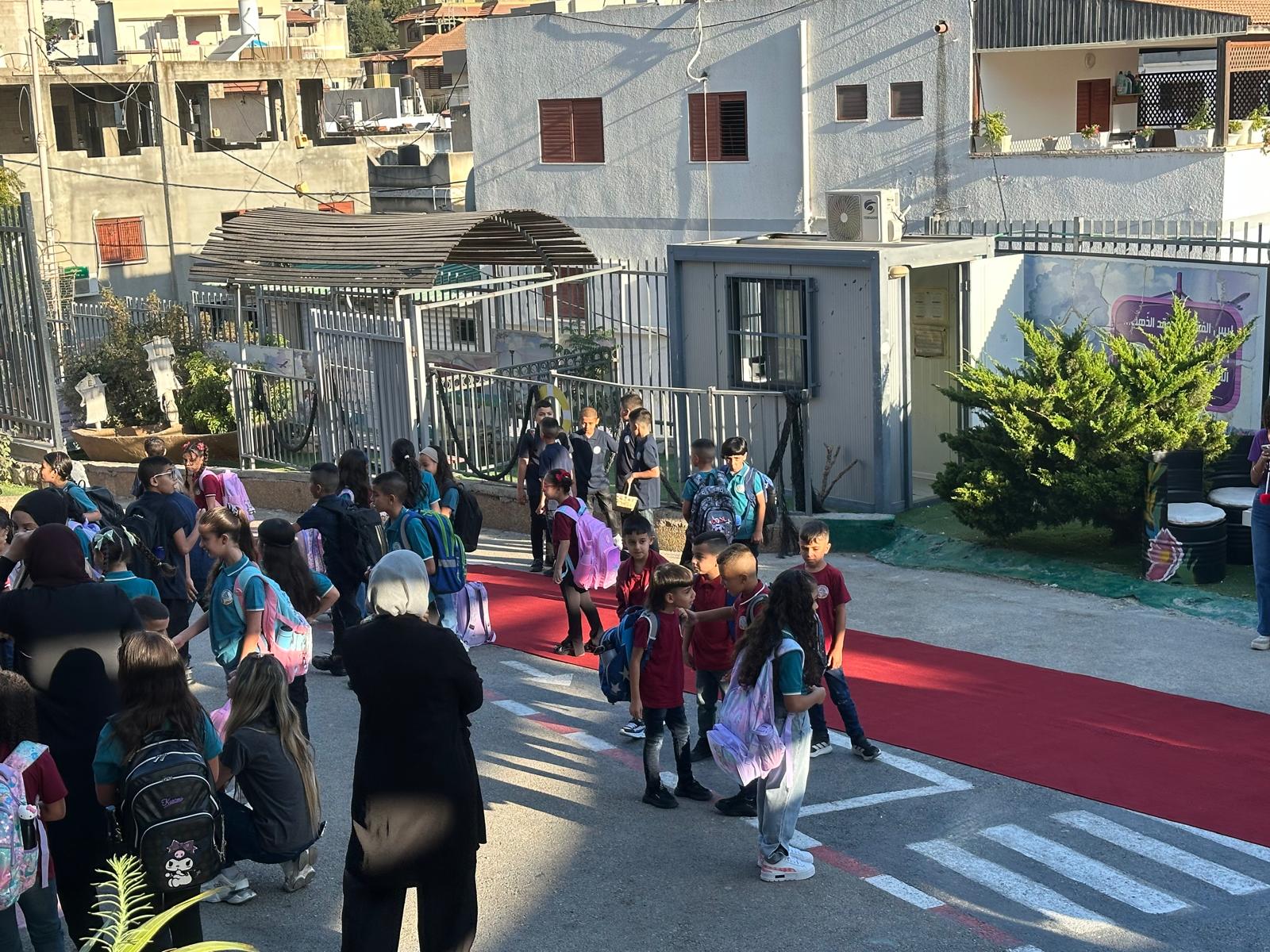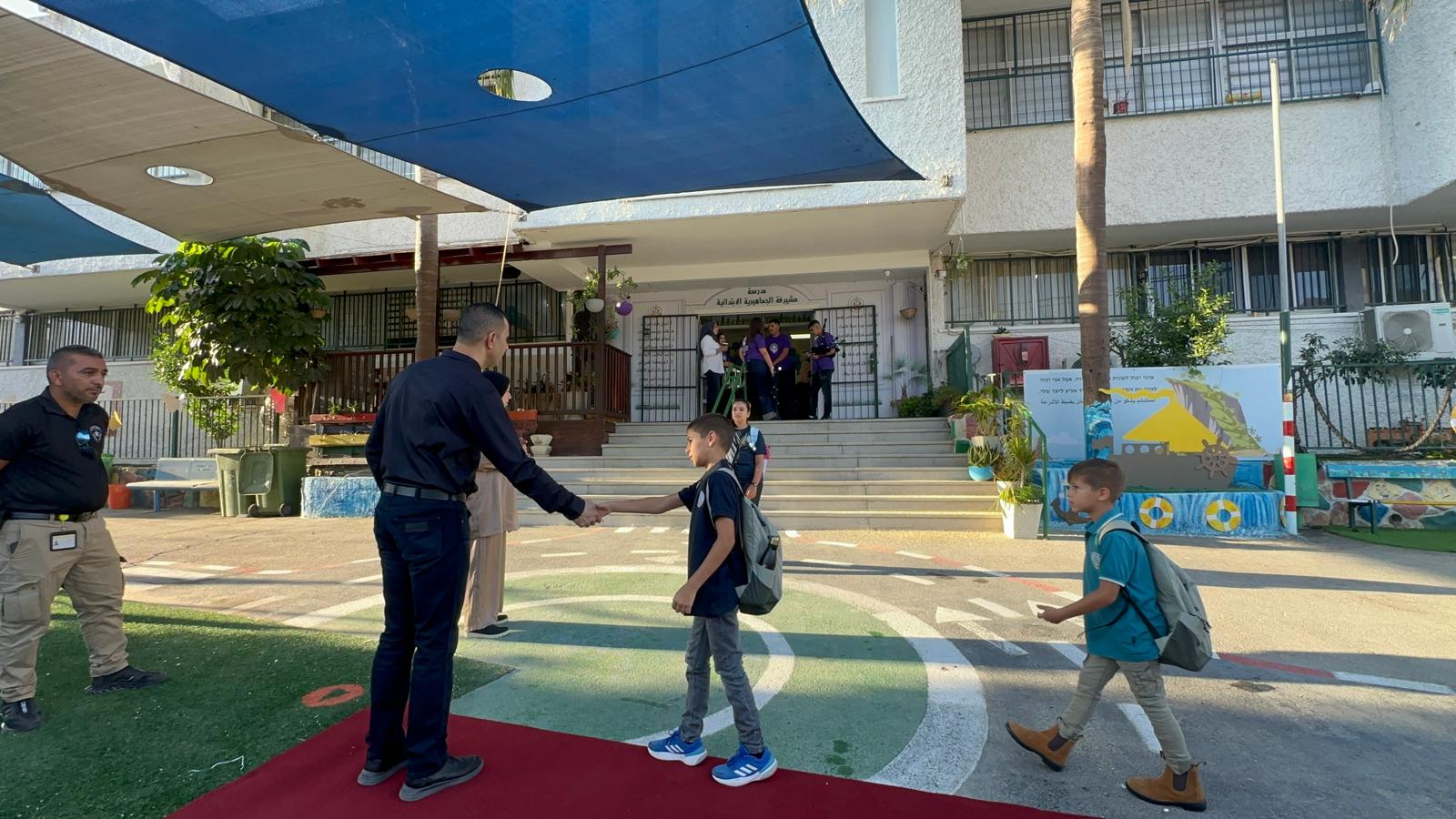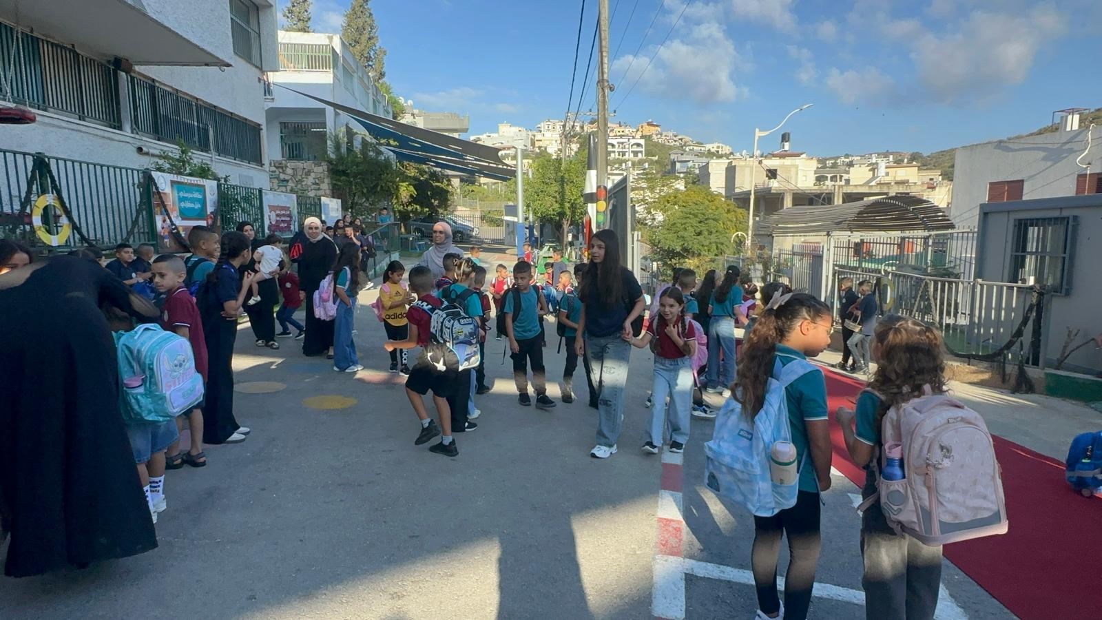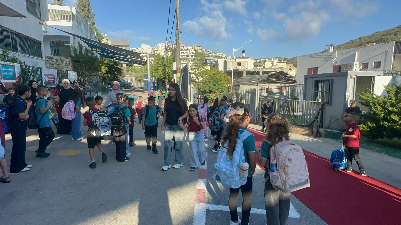 وقد استقبل المعلمون والمعلمات الطلاب على أنغام الكشافة المدرسة وتوزيع الحلويات ، حيث أعرب طلاب المدرسة عن سعادتهم الغامرة بالعودة الى المدرسة .تصوير موقع بانيت وقناة هلا
