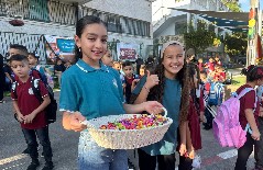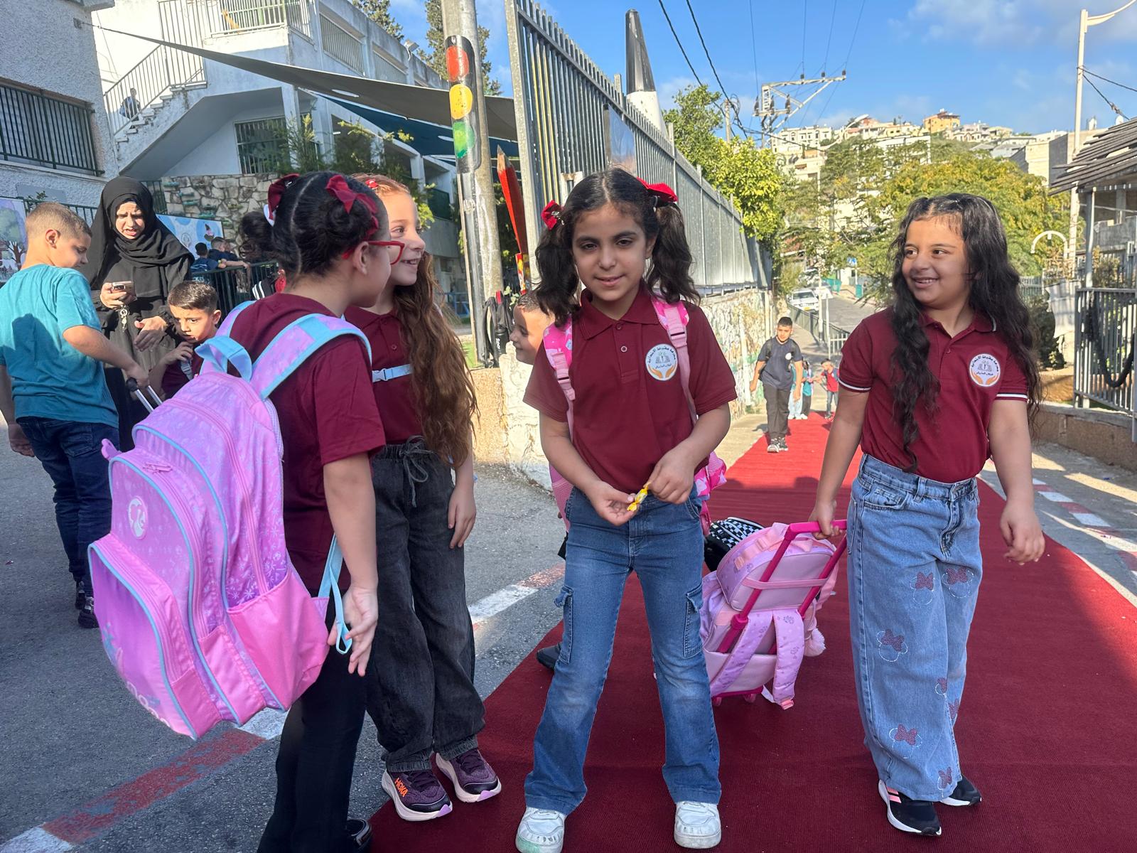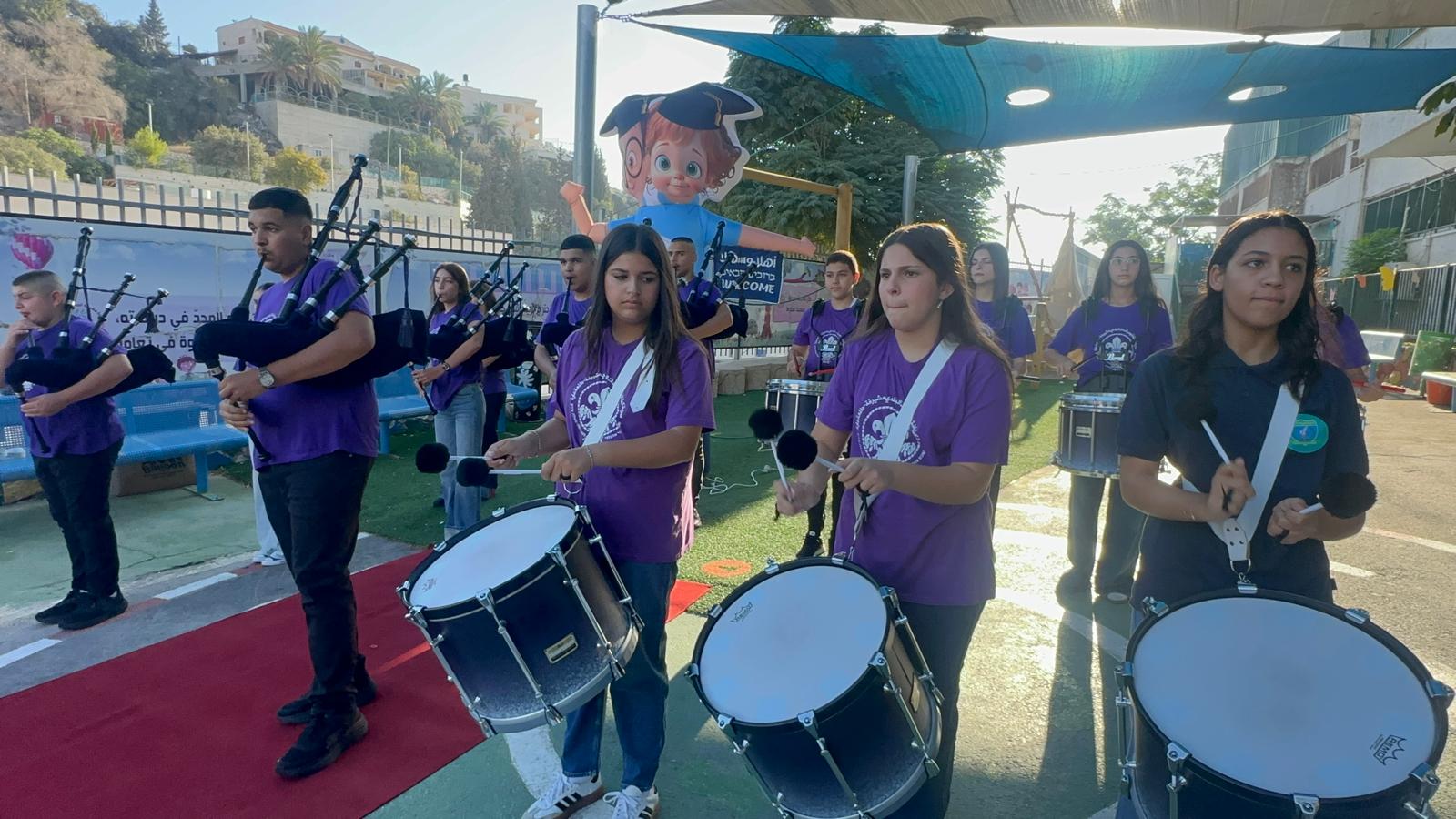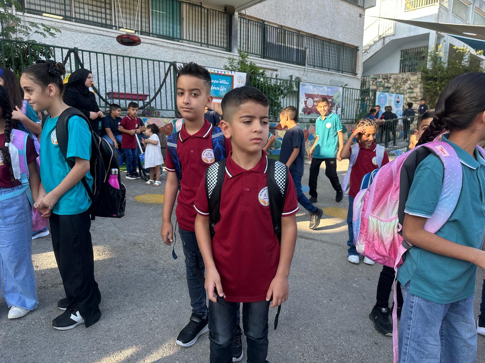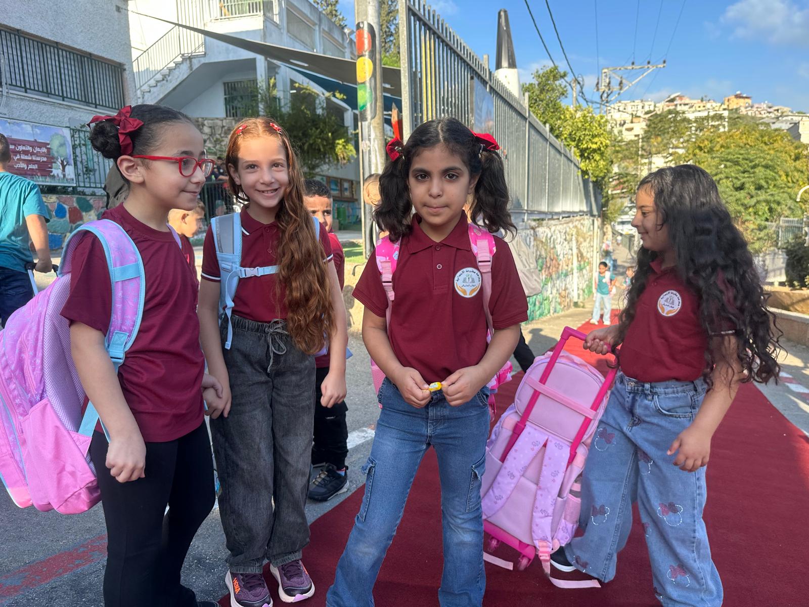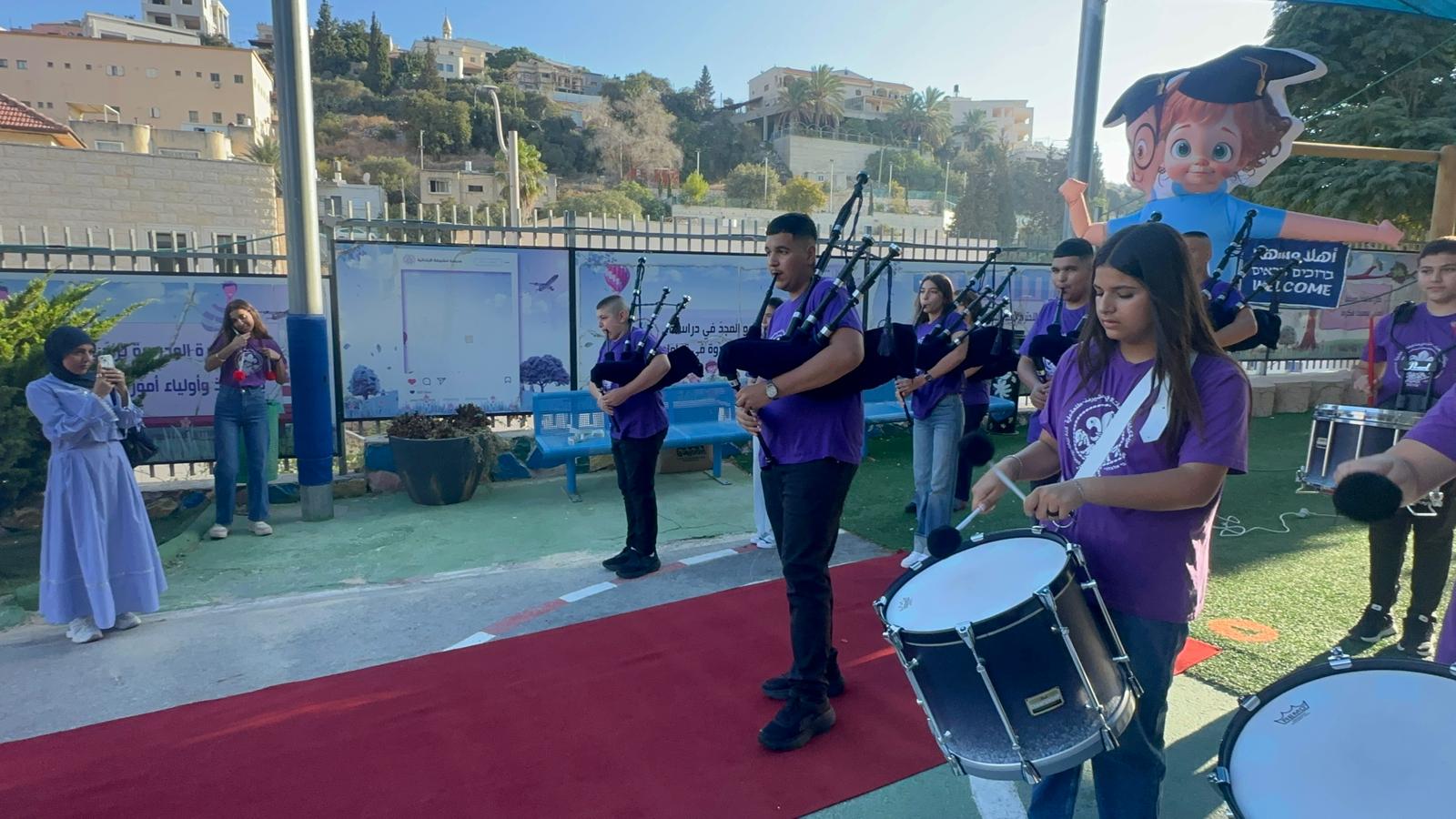 وقد استقبل المعلمون والمعلمات الطلاب على أنغام الكشافة المدرسة وتوزيع الحلويات ، حيث أعرب طلاب المدرسة عن سعادتهم الغامرة بالعودة الى المدرسة .تصوير موقع بانيت وقناة هلا