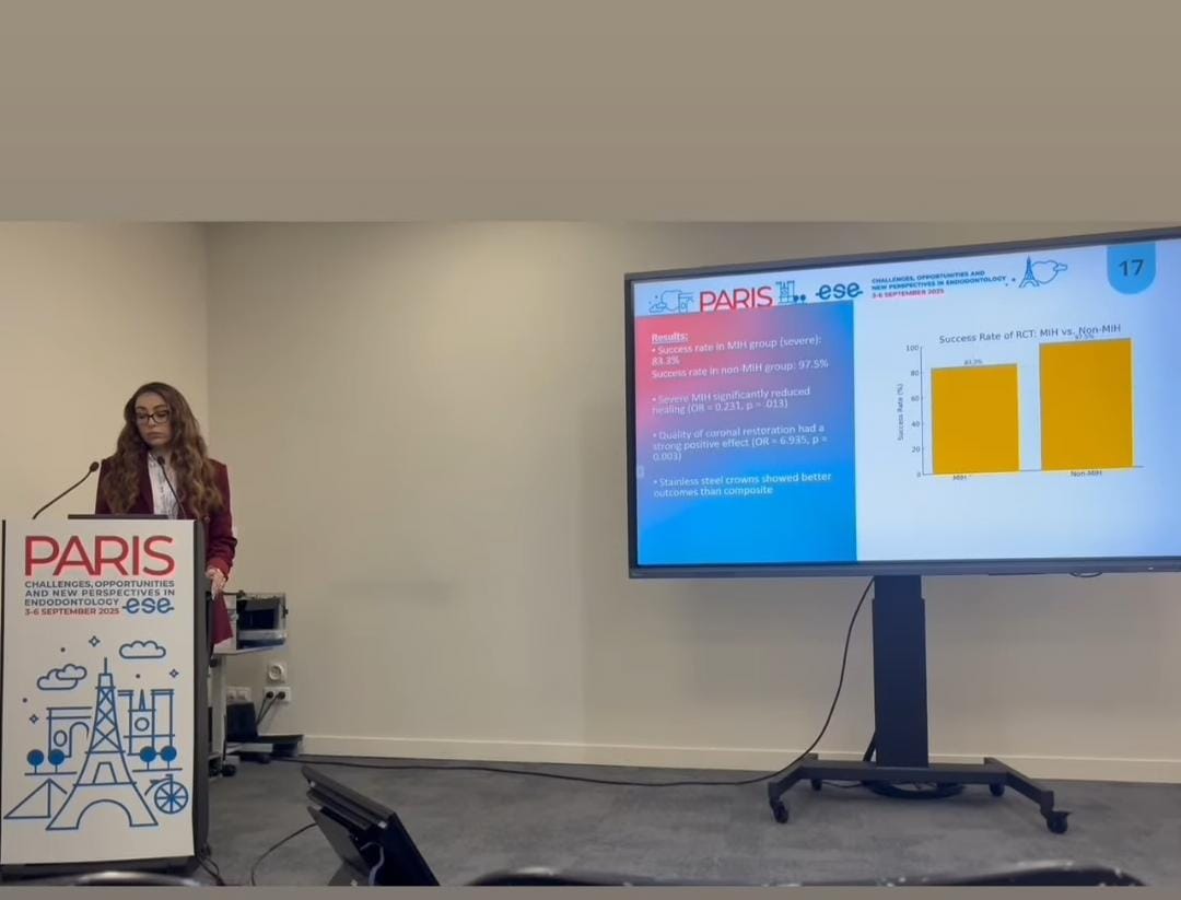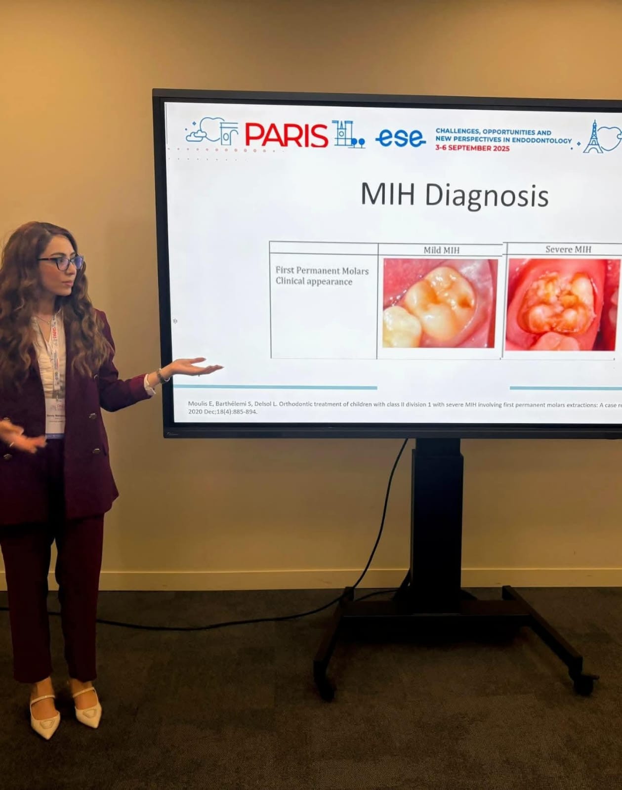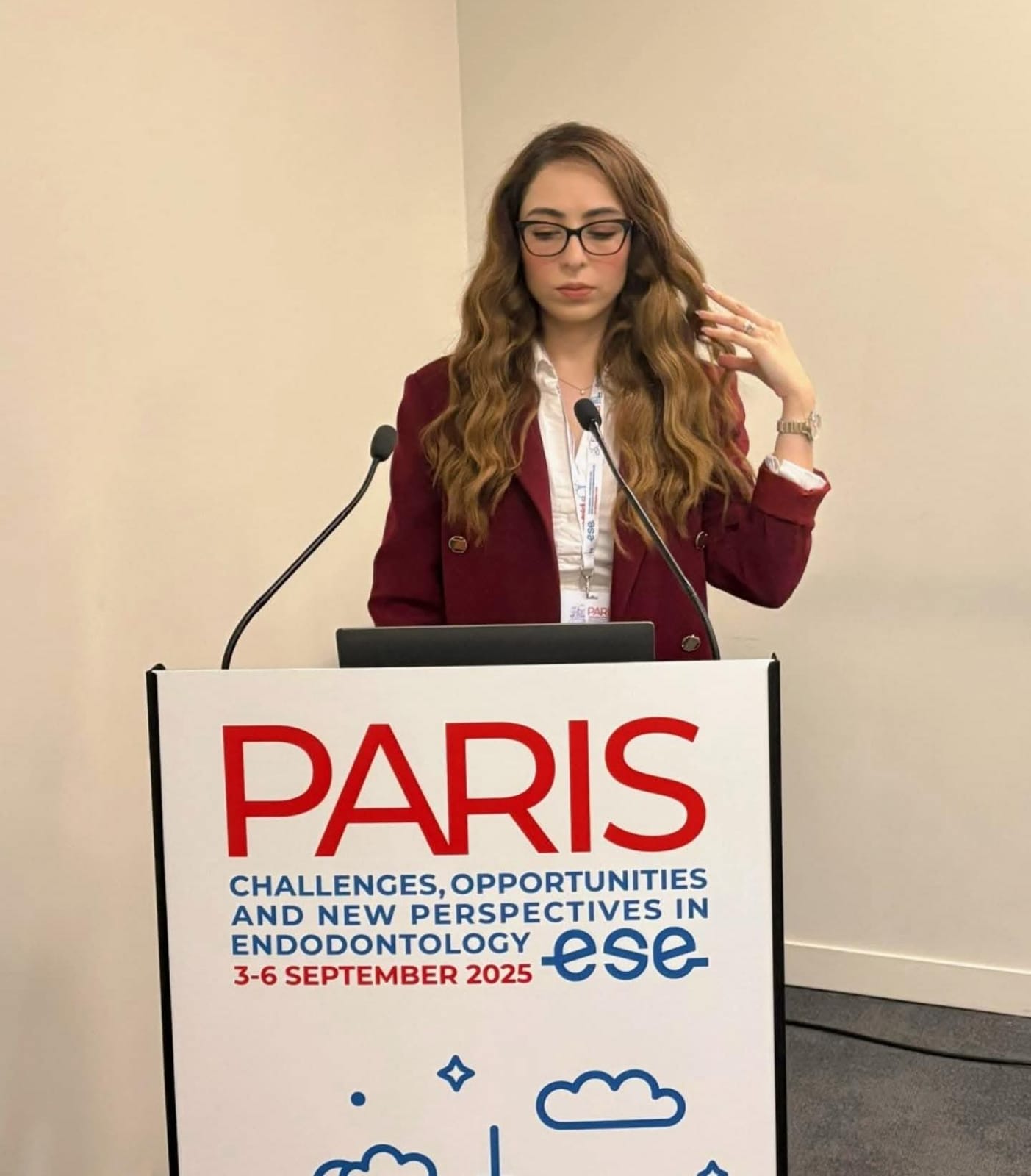 وقد تم اختيارها من قبل إدارة ومشرفي بحث الماجستير (اللقب الثاني) لتمثيل جامعة تل أبيب وعرض بحثها العلمي في مؤتمر ESE الدولي في باريس – أحد أبرز المؤتمرات العالمية في مجال علاج جذور الأسنان.