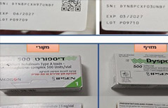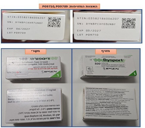 أفادت وزارة الصحة في بيان وصلت نسخة عنه لموقع بانيت وقناة هلا أنه " تم ضبط أدوية مزيّفة من نوع ديسبورت 500 (Dysport®️ 500) في إحدى صيدليات حيفا، وذلك في أعقاب رقابة نفذها قسم الإنفاذ والإشراف
