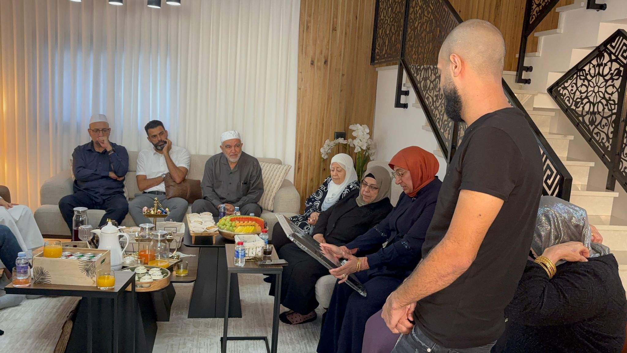وقد كان في استقبال وفد المبادرة عائلة المخرج عمر، الذين غمروهم بحفاوة بالغة وكرمٍ كبير، حيث ساد اللقاء جوّ من المحبة والابتسامة والحميمية.