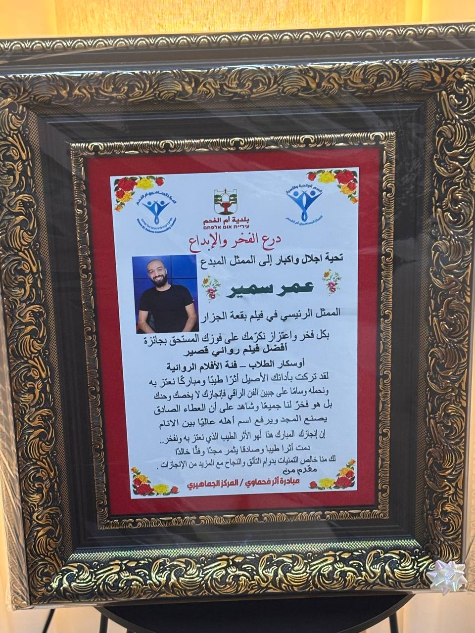 قامت مبادرة "أثر فحماوي" المنبثقة عن قسم الوالدية المركز الجماهيري – بلدية أم الفحم بزيارة تهنئة إلى الشاب المخرج عمر سمير محاميد، بعد فوزه المستحق بجائزة أفضل فيلم روائي قصير ضمن أوسكار الطلاب – فئة الأفلام الروائية.