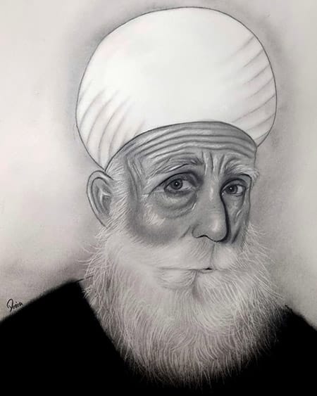 لوحة لصورة الشيخ المرحوم أمين طريف بريشة الفنانة دنيا أبو حمدة من يركا