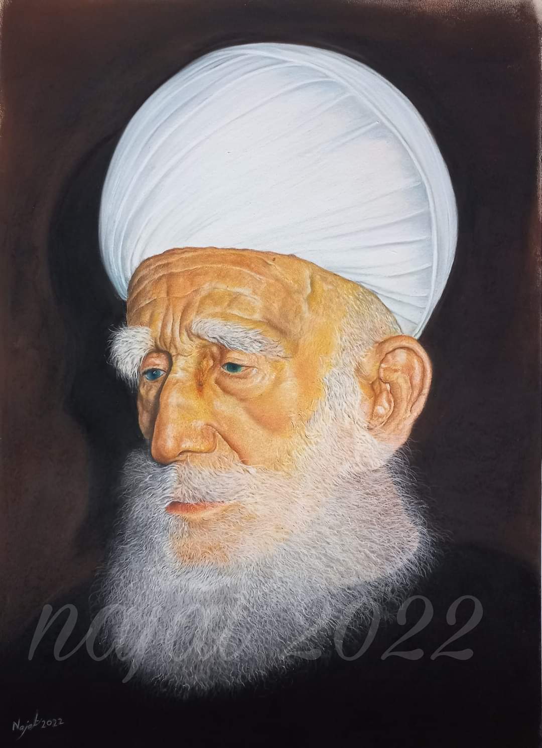 لوحة لصورة المرحوم الشيخ أمين طريف بريشة الفنانة نجاة عبد الله شاهين