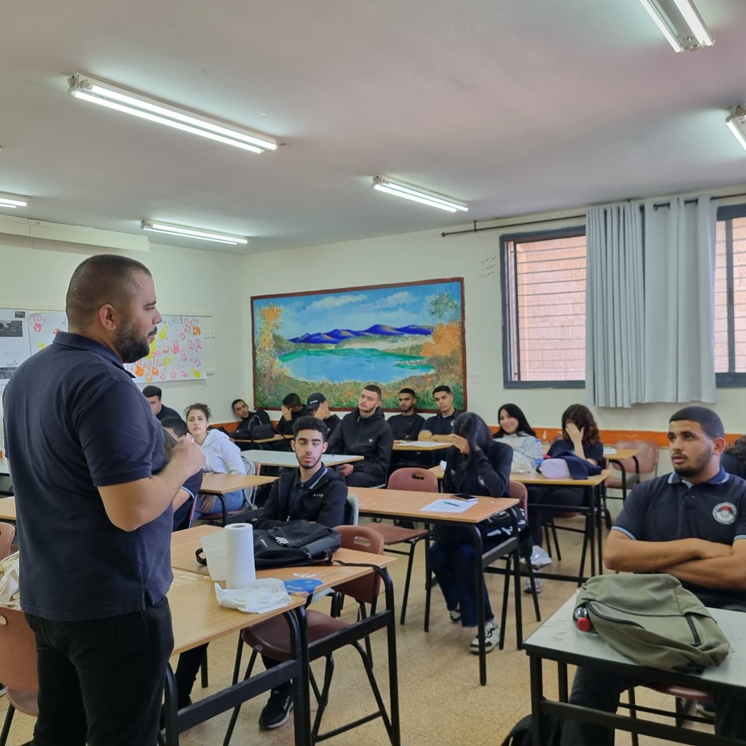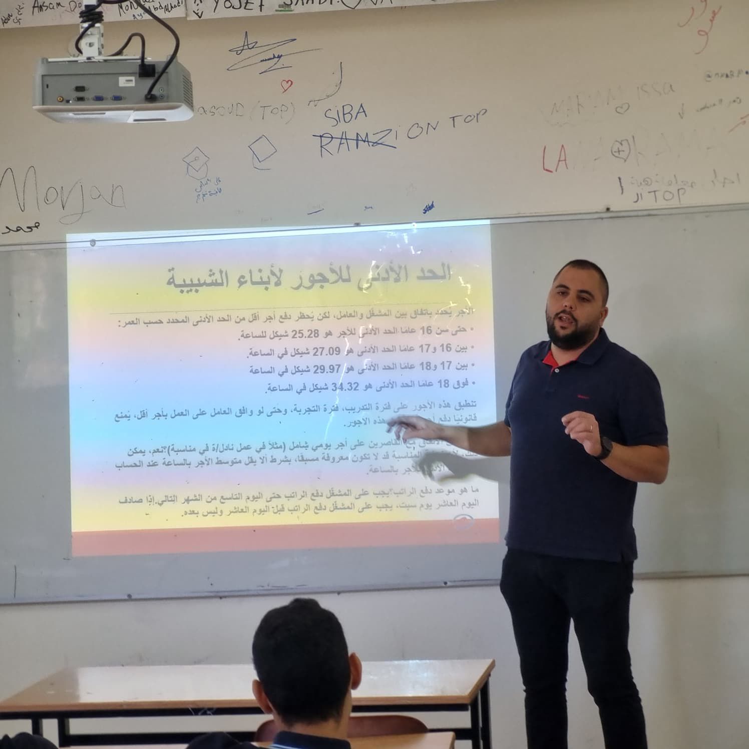 النقابي عزيز بسيوني يقدّم ورشة ‘اعرف حقك ع بكير‘ لطلاب مدرسة الجليل الثانوية في الناصرة