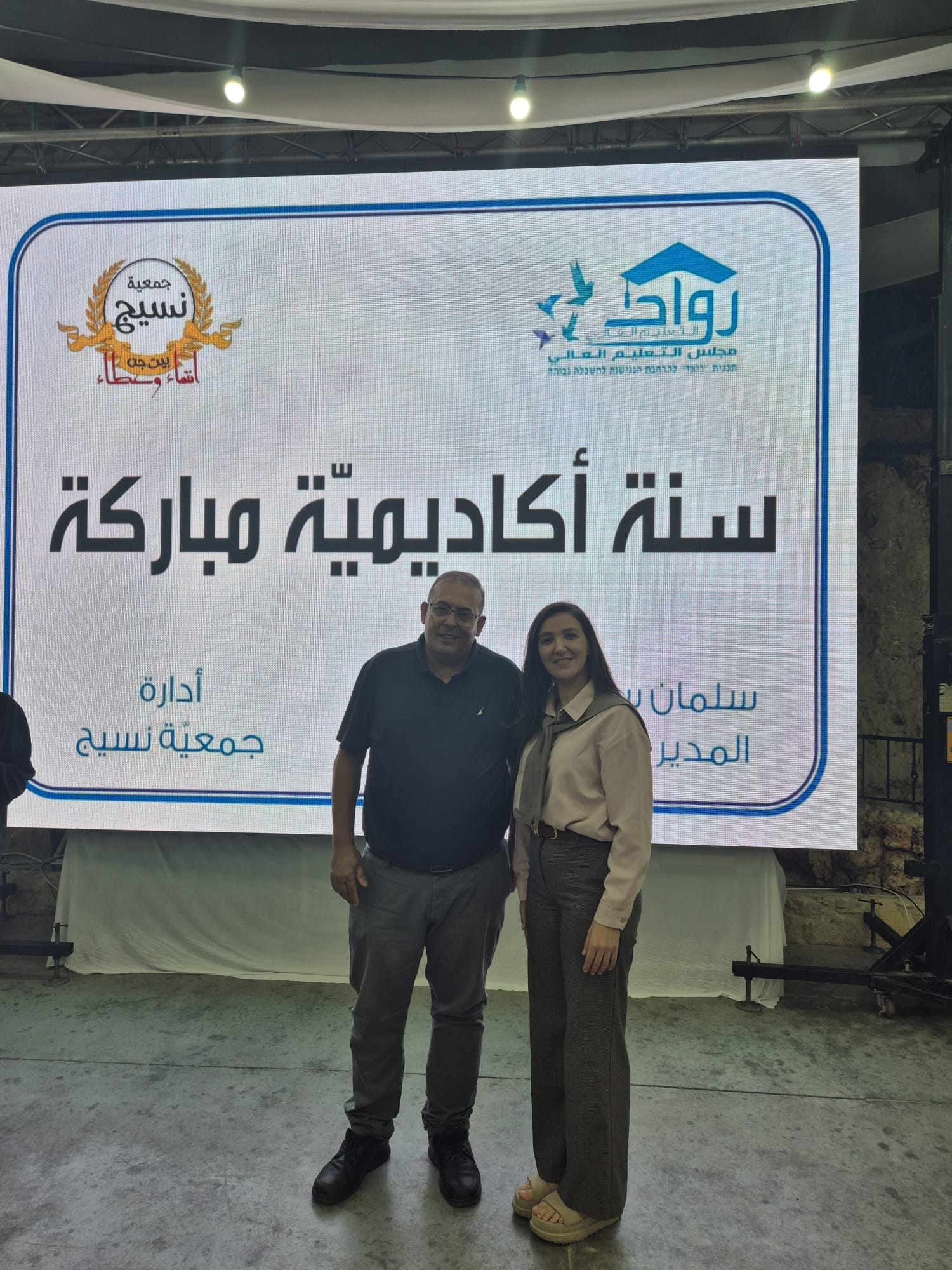 مساؤكم أمل، ومستقبلكم واعد، وقلوبنا معكم، فأنتم فخرُنا واعتزازُنا. يسعدنا في جمعيّة نسيج أن نلتقي بكم في هذه الأمسية المميّزة، احتفاءً بعودتكم إلى مقاعدِ الدراسة الأكاديميّة. أنتم عِمادُ المجتمع، وأنتم الأملُ الّذي نعلّقُ عليه الطموحات. التعليم العالي ليس مجرّد شهادة، بل هو جسرُ عبورٍ إلى المستقبل، وسلاحٌ يُقاوِم الجهل، ومفتاحُ بناءٍ لمجتمعٍ أكثر وعيًا ورقيًّا.