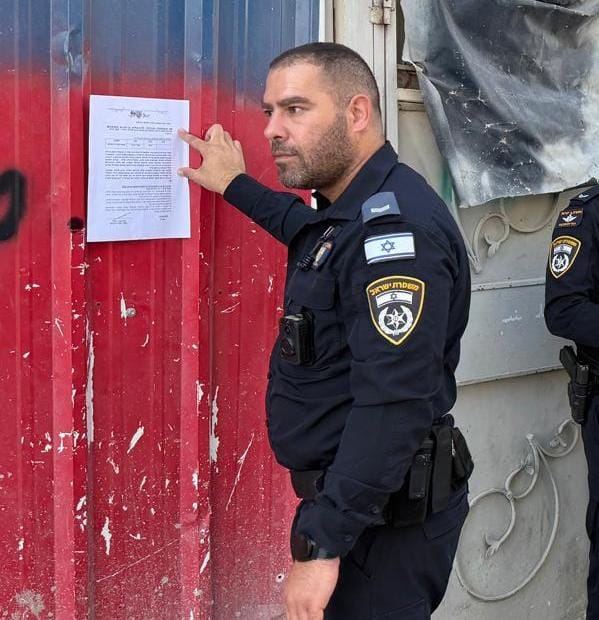 بشبهة الإتجار بالمخدرات، ومؤخراً قُدمت ضدهم لوائح اتهام من قبل النيابة الجنائية في لواء القدس. أصدر قائد لواء القدس أمراً بإغلاق المكان، وفي هذه الساعات يُنفَّذ إخلاء المجمع الذي استُخدم لتجارة المخدرات " .